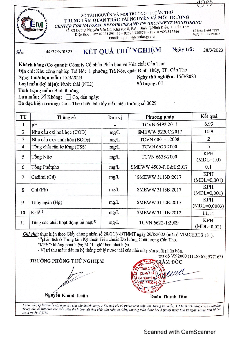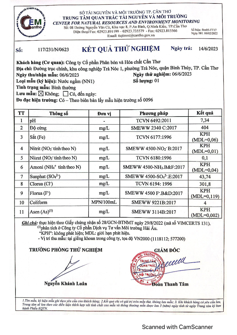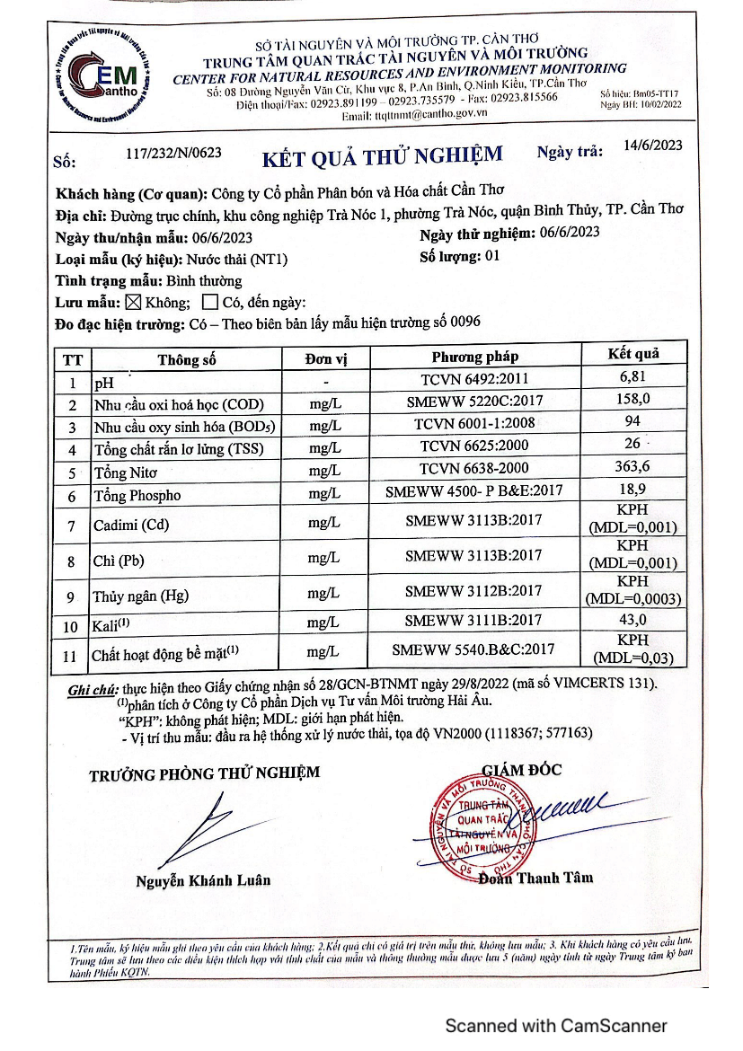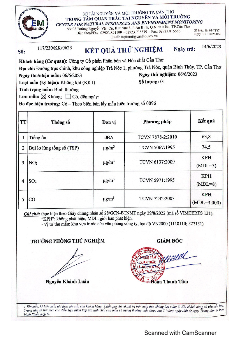 CFC - Kết quả quan trắc môi trường - Quí I và II năm 2023