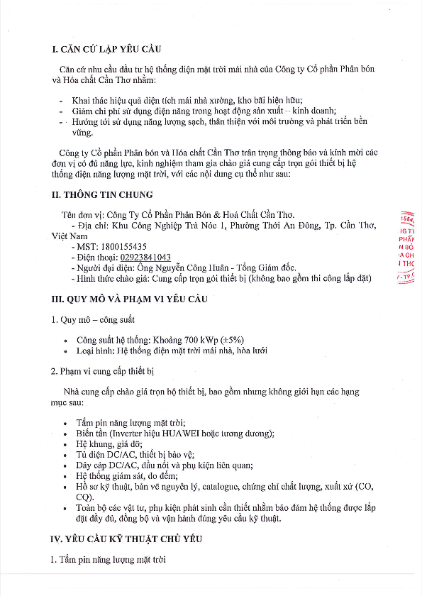 Công ty cổ phần phân bón và hoá chất Cần Thơ xin thông báo đến các đơn vị.