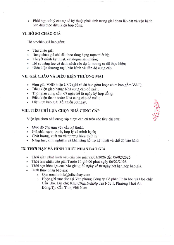 CFC - Mời chào giá thiết bị