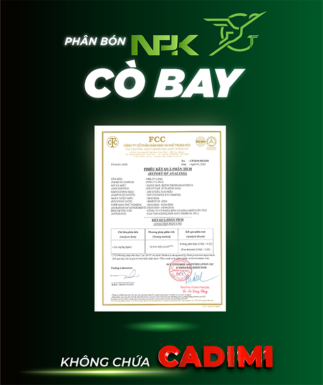 Phân bón #NPK Cò Bay tự hào không chứa cadimi gây hại, đảm bảo an toàn cho cây trồng và sức khỏe con người.